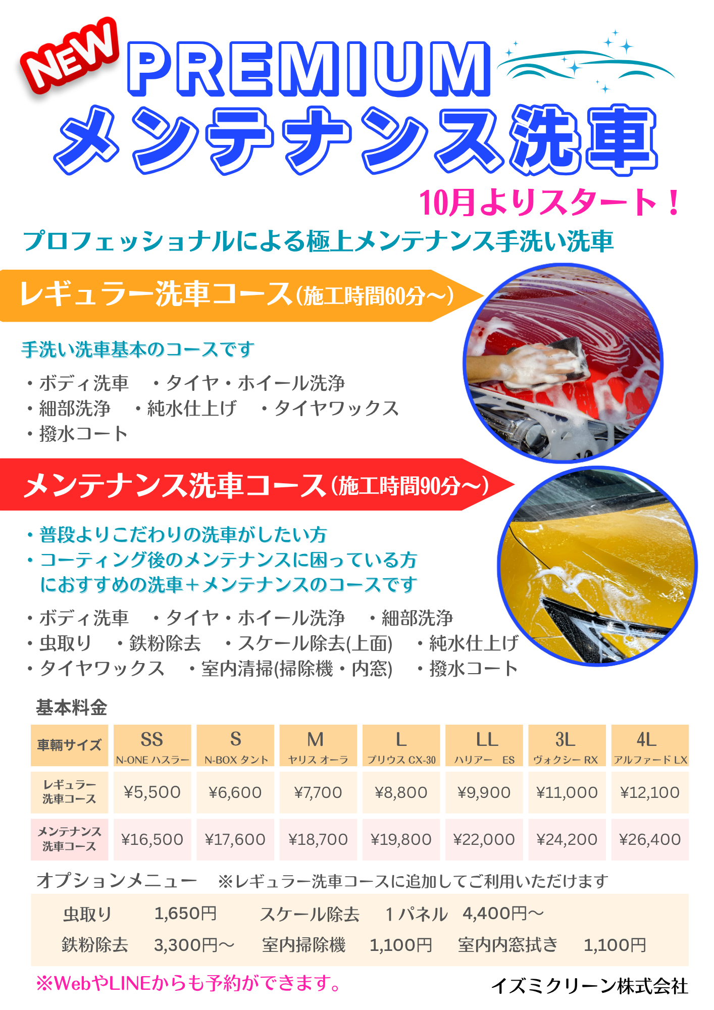 10月より皆様からご要望の多かったプレミアム手洗い洗車をスタートいたします!!