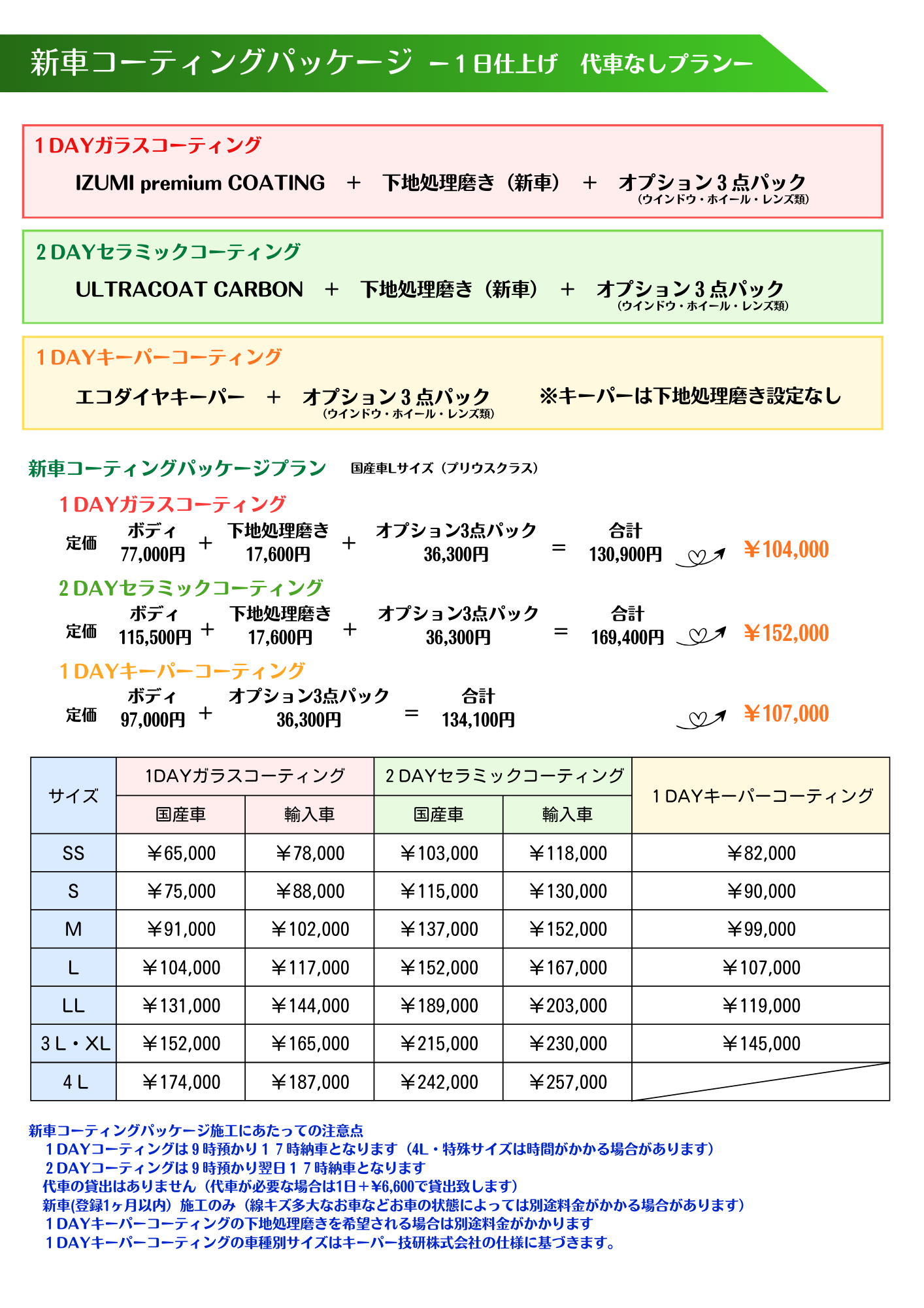 そんな方に、イズミクリーンの1DAYコーティングは最適です。