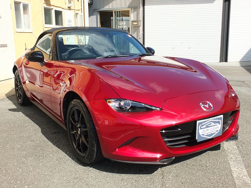 ロードスターの定期メンテナンスでの入庫です。満足ケアメンテナンスの施工です。