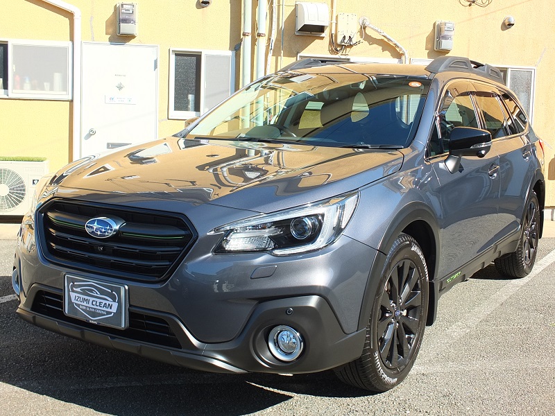 スバル アウトバックの入庫です。塗装ミストが付いているお車でしたので、ミストの除