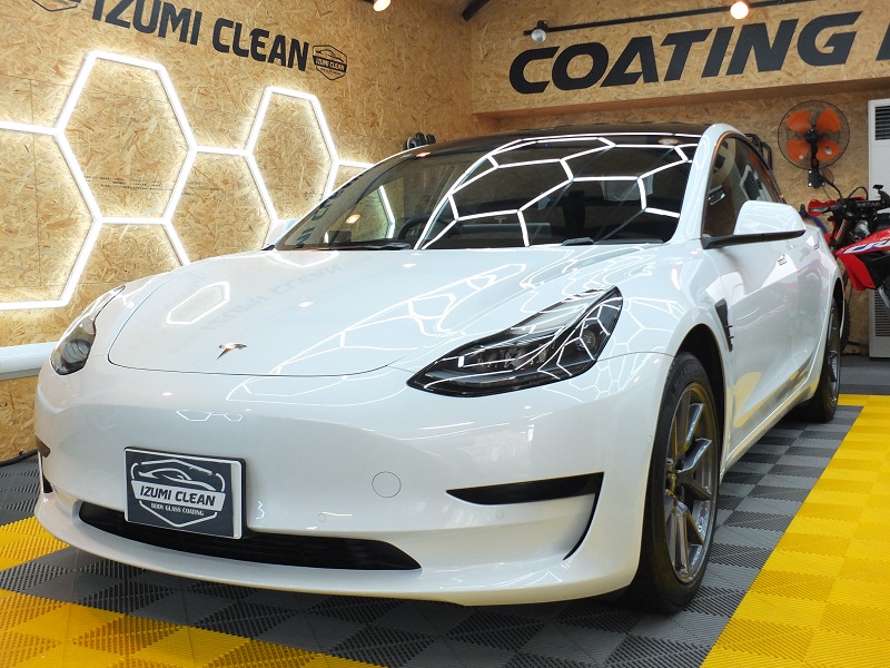 テスラモデル3の定期メンテナンスの入庫です。満足ケアメンテナンスを施工しました。