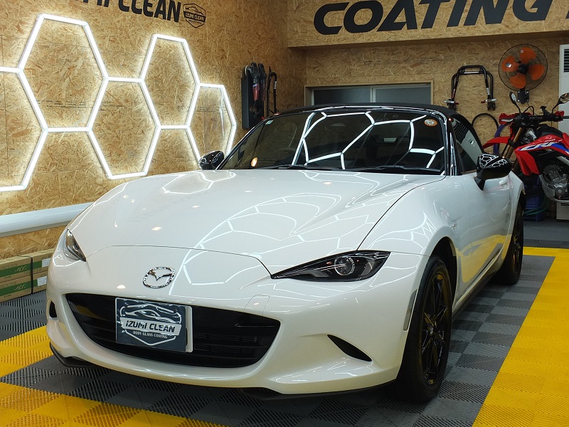 新車ロードスターの入庫です。当店一番人気のセラミックコーティングウルトラコート