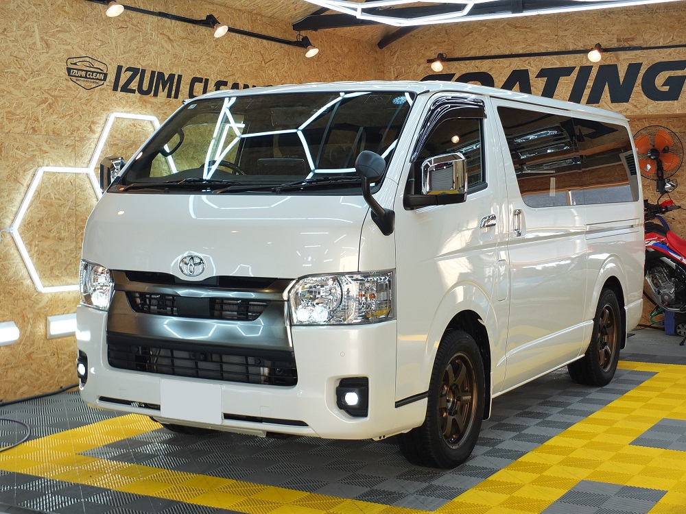 新車ハイエースの入庫です。DPROプレミアムコーティングBPevo、オプションでコー