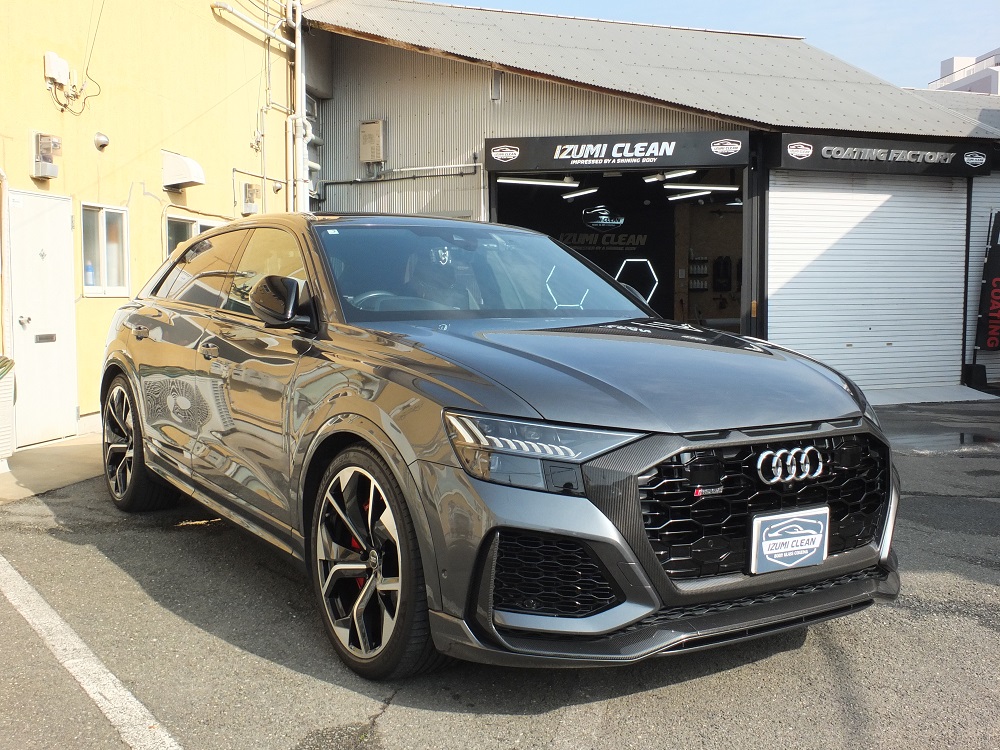 アウディQ8の入庫です。鏡面加工&プレミアムコーティングのご注文です。