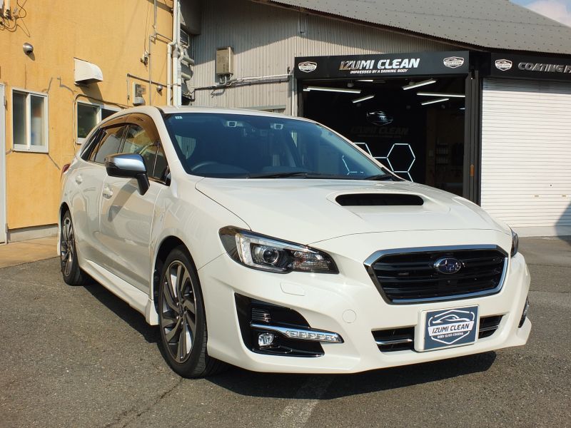 レヴォーグのミスト除去と磨き・コーティングでの入庫です。細かなミストがお車全体に