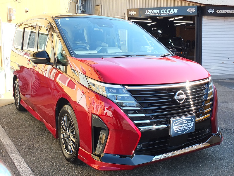 セレナの鈑金修理後の再コーティングと全体メンテナンスのご依頼です。鈑金修理後は