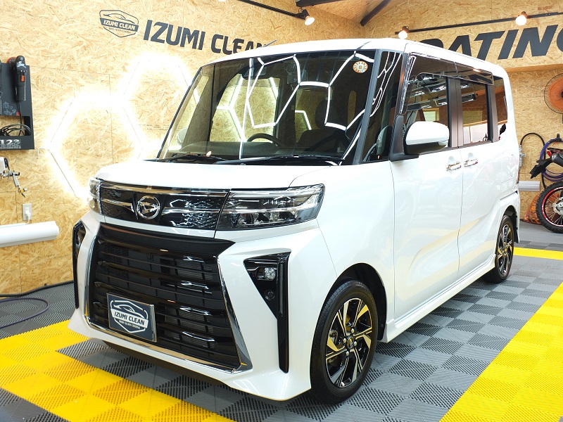 タントの板金塗装修理後の部分コーティング施工で入庫しました。メンテナンスもご依