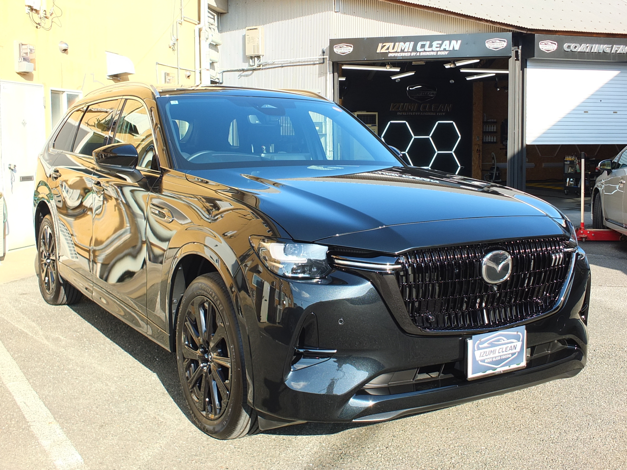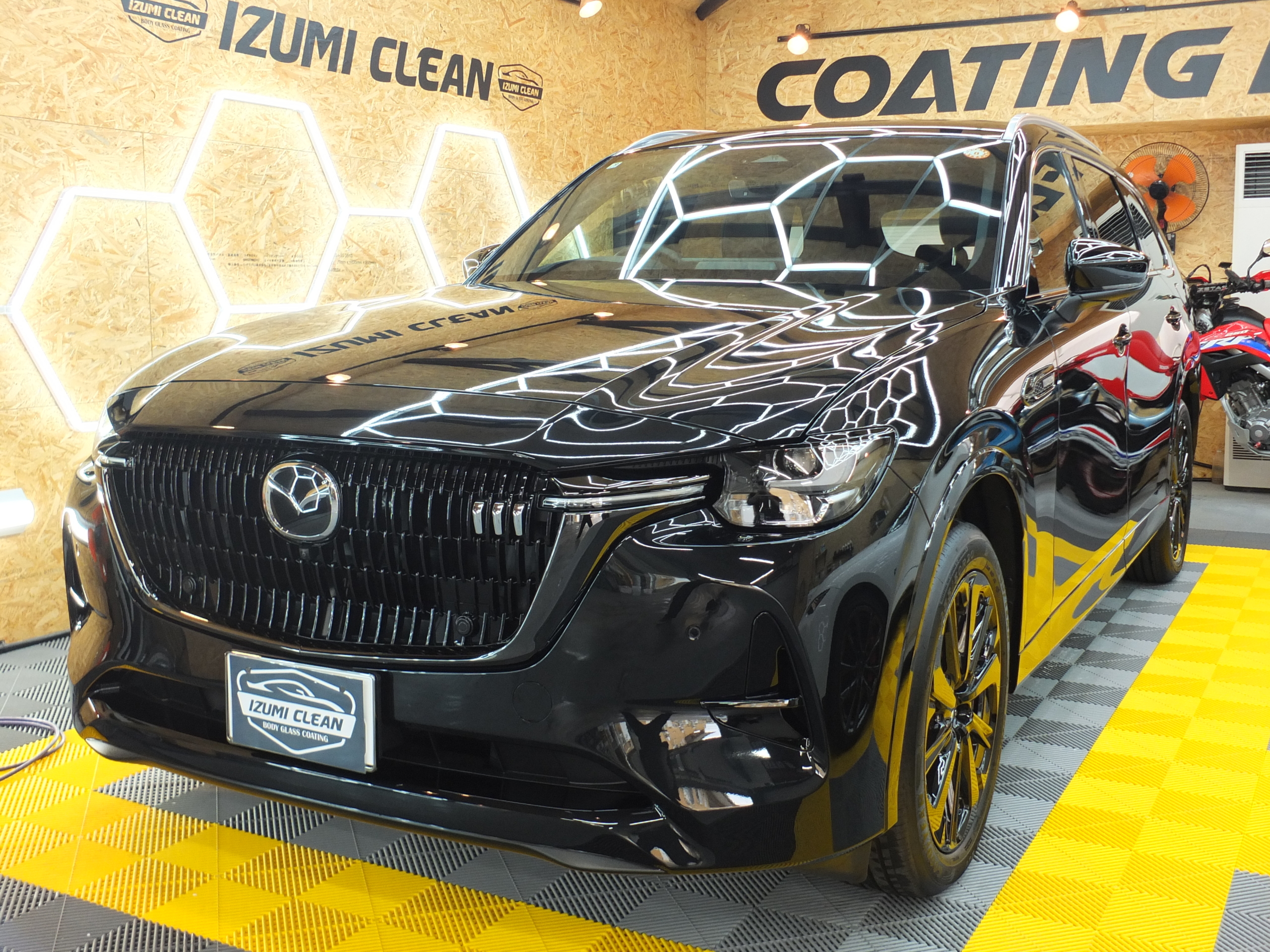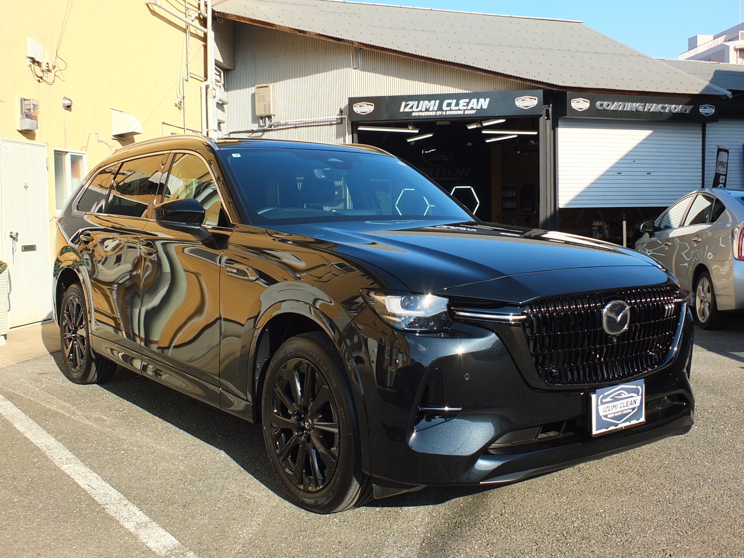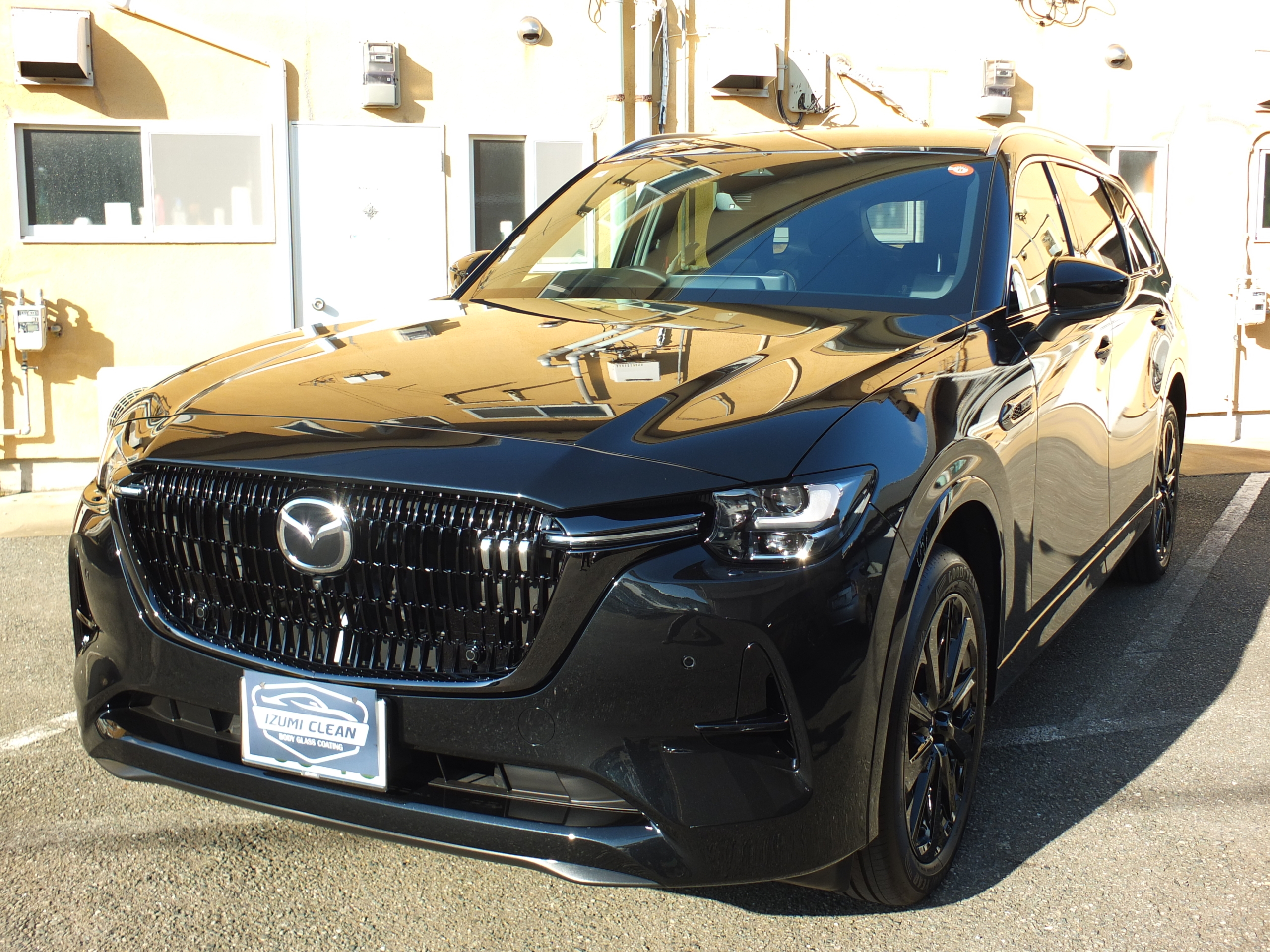 新車のCX-80の新車磨きとセラミックコーティング最高級マグナイト、ウインドコーティング