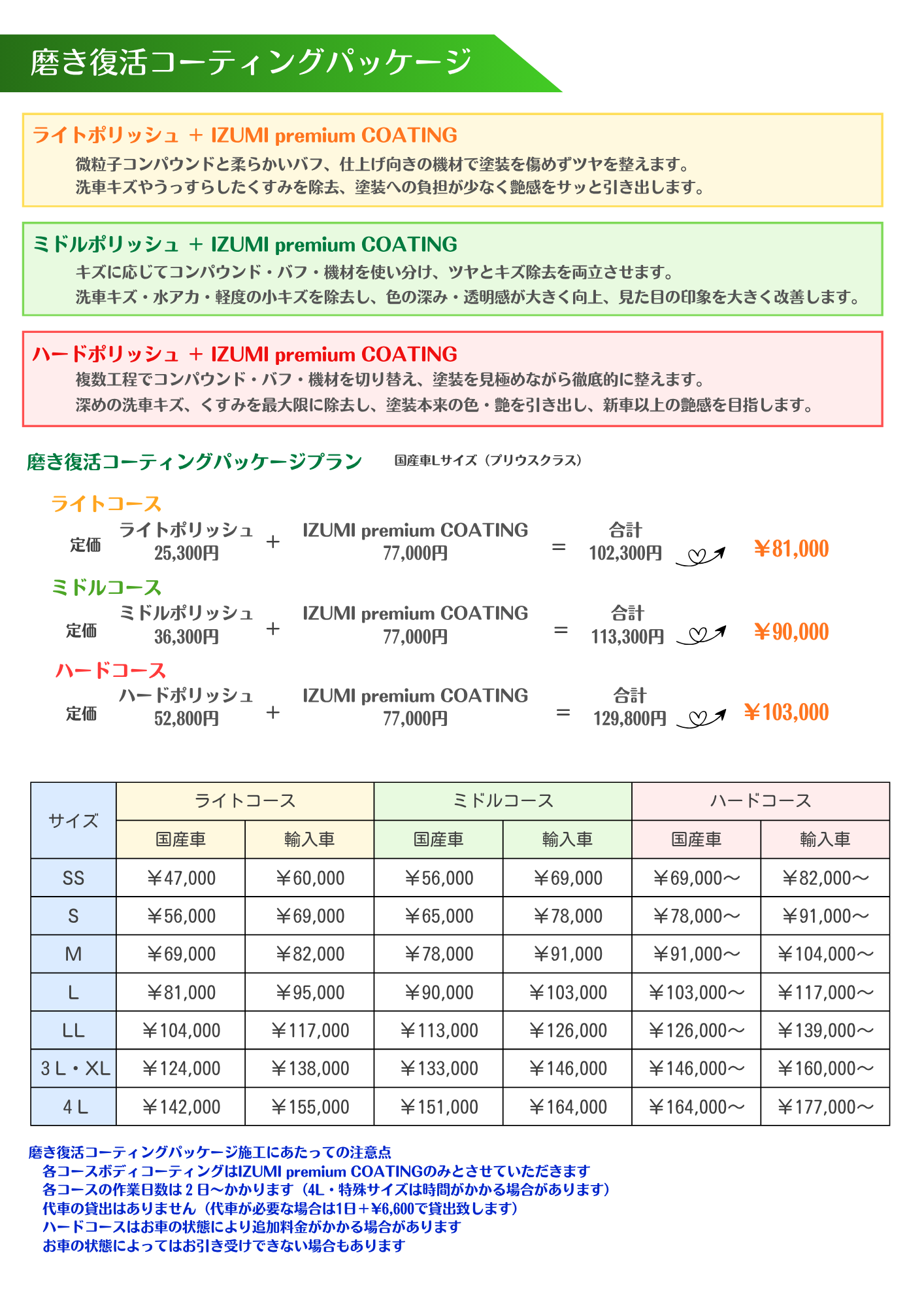 磨き・コーティングプランです。